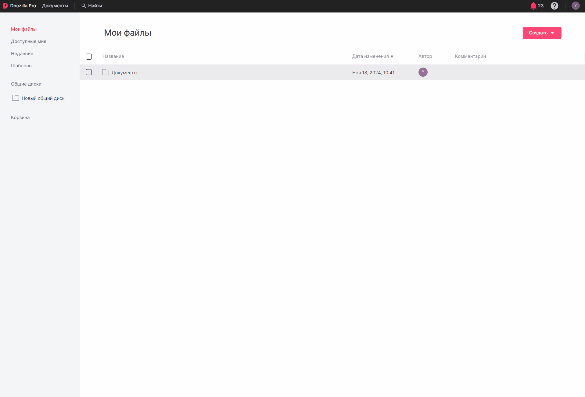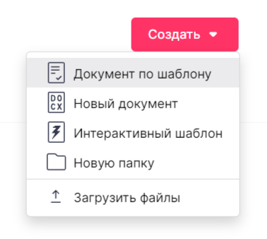 - Через кнопку «Создать» в разделе «Документы»