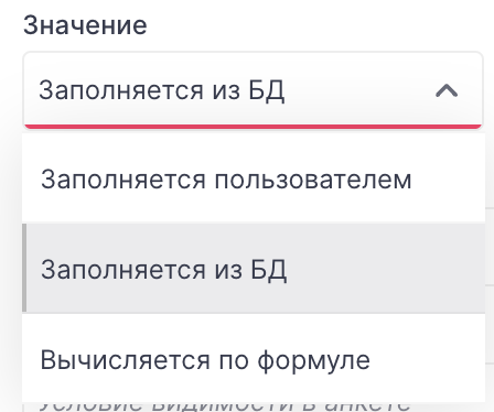 1. Выберите способ заполнения значения в настройках элемента - Заполняется из БД.