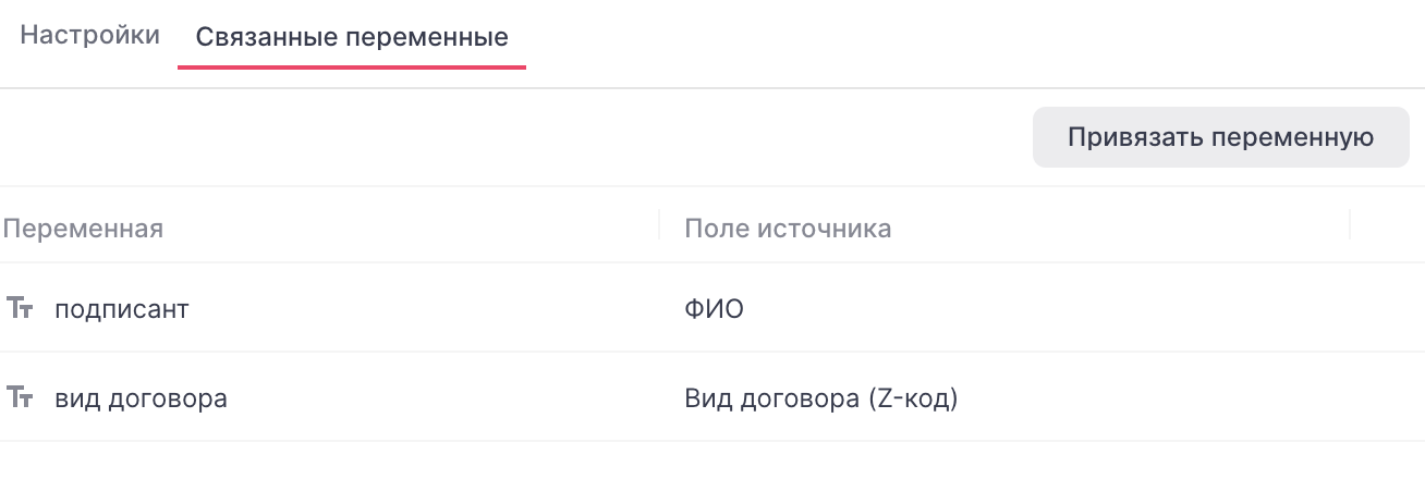 Всю настройку мы завершили во вкладке "Настройки". Теперь можно перейти к привязке переменных во вкладку "Связанные переменные".
