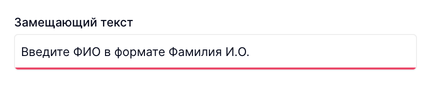 (6) Замещающий текст - возможность задать подсказку внутри пустого поля переменной. При вводе текста в поле переменной подсказка будет исчезать.