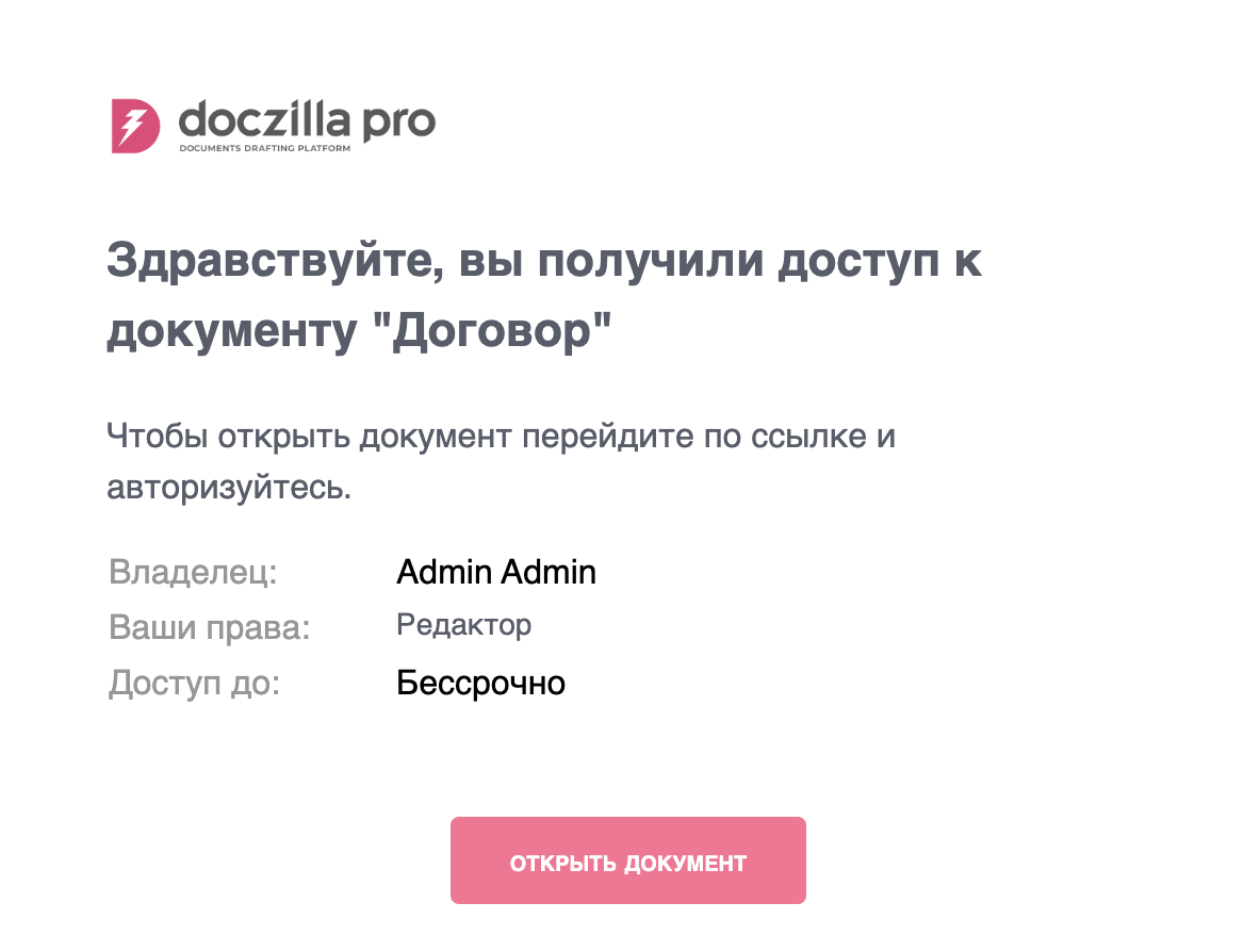 Вы можете поделиться документом или папкой с кем угодно, в том числе с людьми, у которых ещё нет доступа к Doczilla, пригласив их по email для совместной работы с документами.