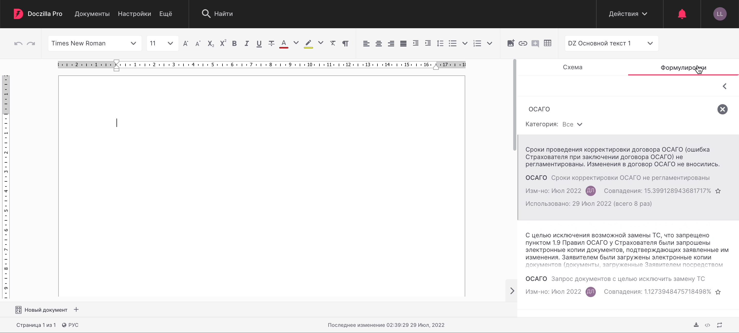 В Doczilla вы можете создать свою собственную библиотеку формулировок, дополнять и корректировать ее. Как настраивать формулировки мы рассказываем здесь.