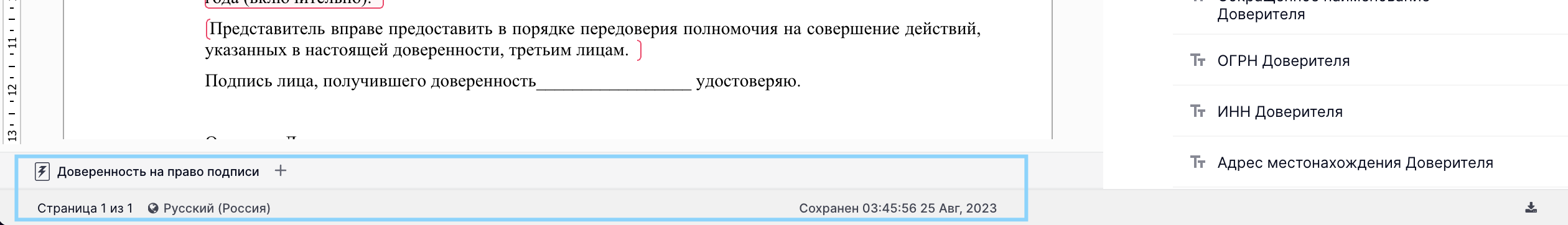 Текстовый редактор позволяет управлять контентом вашего документа или шаблона.