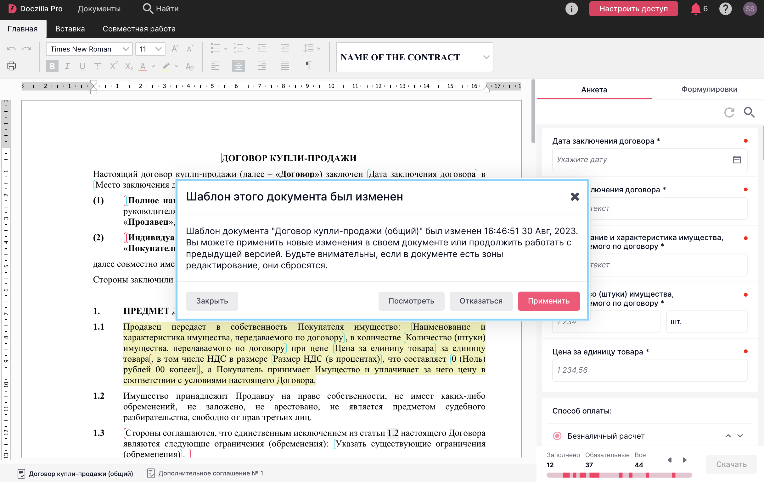 В Doczilla реализована связь между опубликованными шаблонами и созданными на их основе анкетами. Если эксперт снимет с публикации шаблон, внесет изменения и заново опубликует, то у пользователя при открытии анкеты появится соответствующее уведомление.