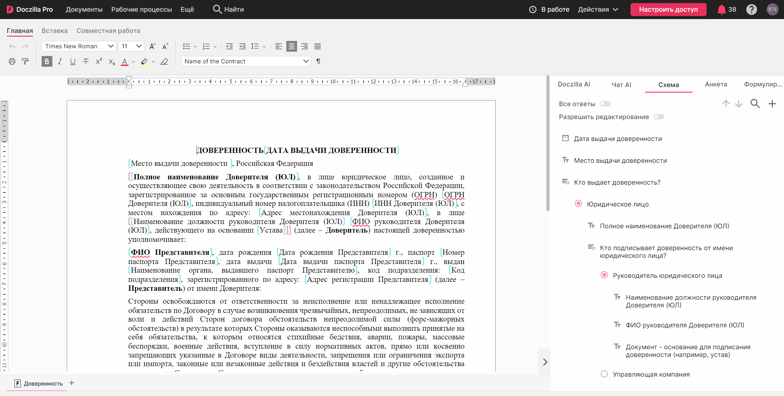- Параметры документа - вкладка для заполнения переменных маршрута