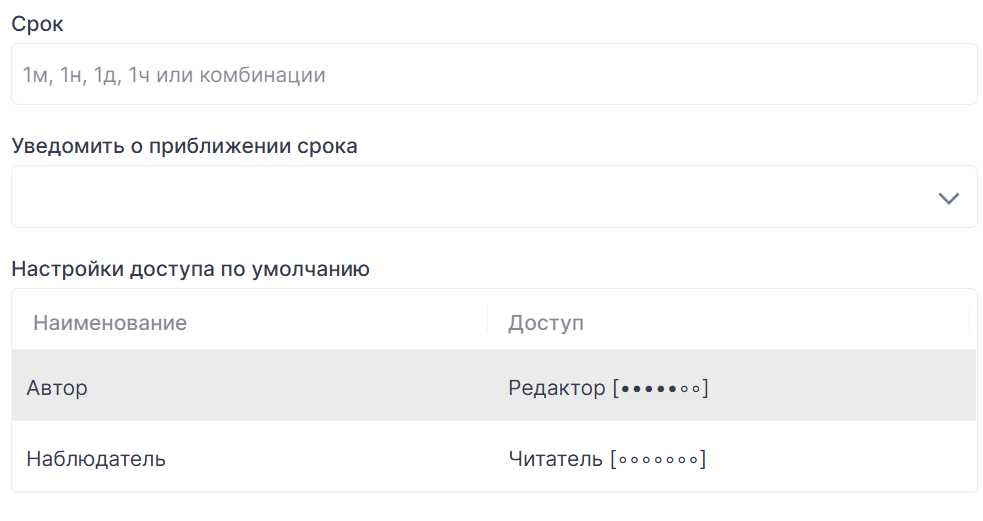 Появление уведомления о приближении дедлайна регулируется настройками полей Срок и Уведомить о приближении срока при создании маршрута: