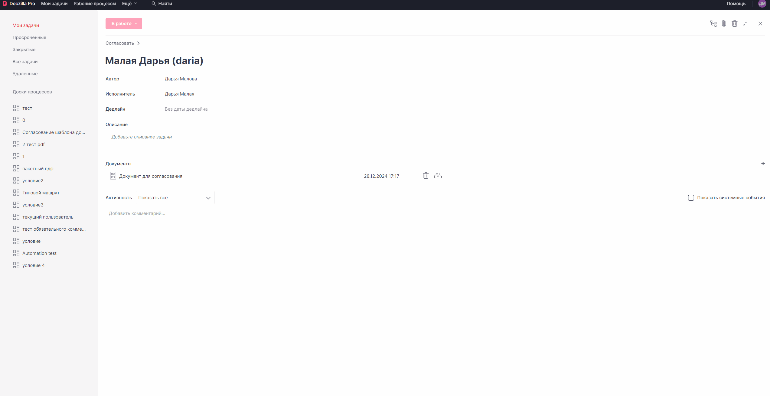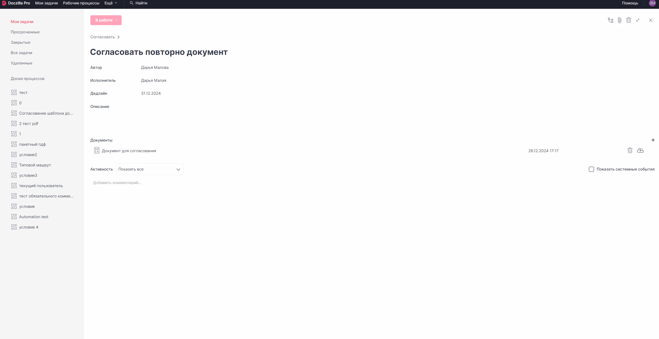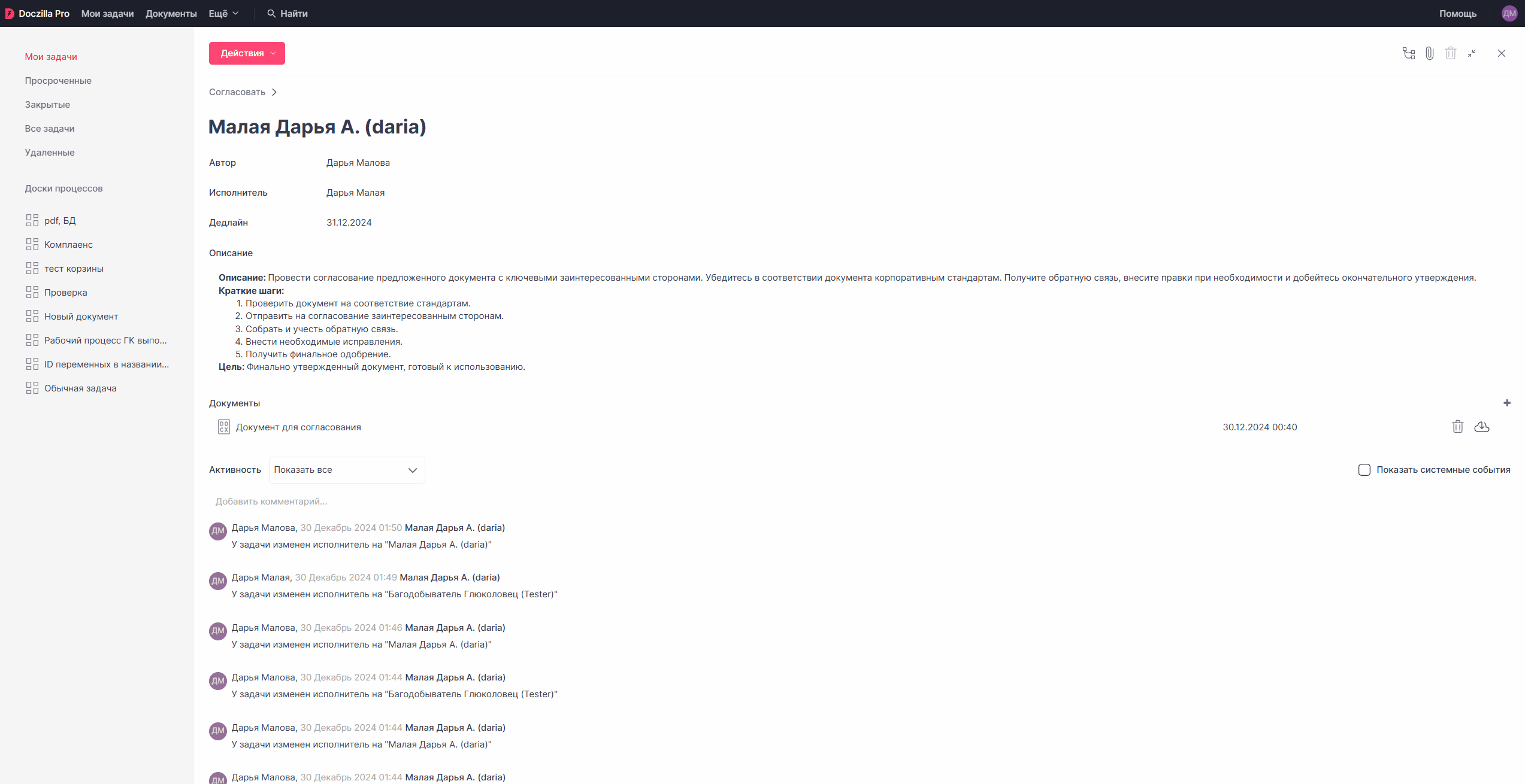 Исполнитель может переназначить задачу на другого исполнителя. В этом случае уведомление о смене исполнителя придет автору процесса, где будет информация о новом исполнителе и ссылка Посмотреть задачу