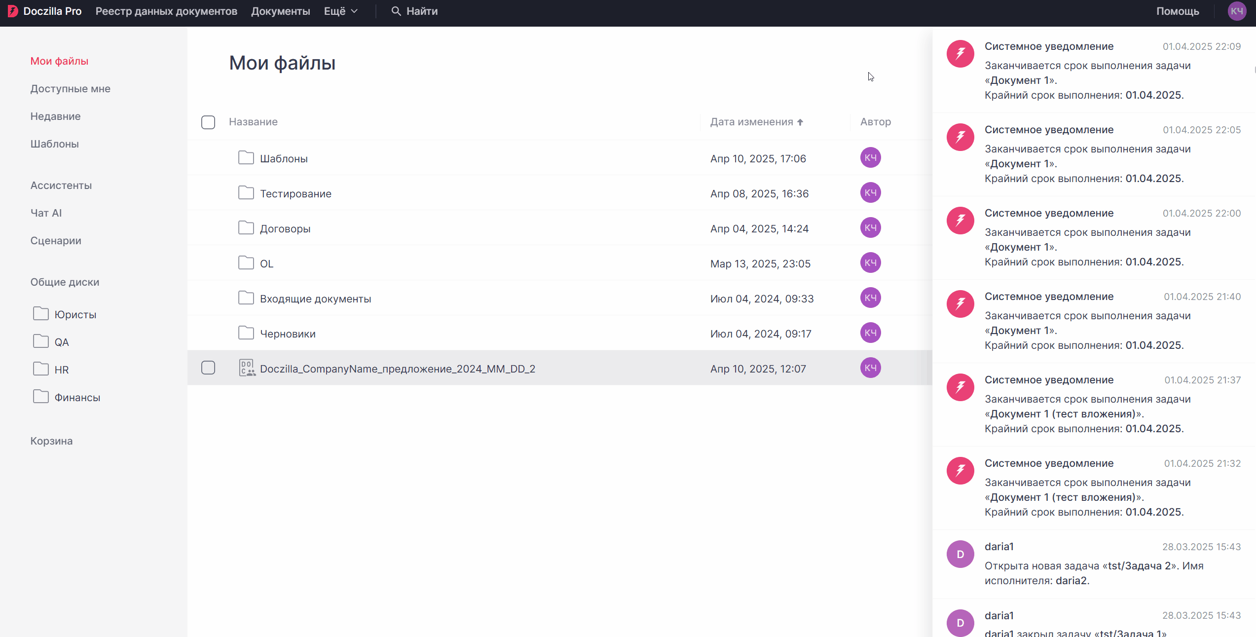Список уведомлений расположен в правой верхней части панели интерфейса и раскрывается при клике на иконку пользователя:
